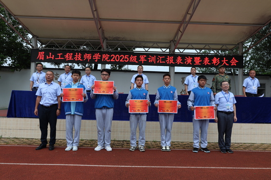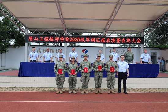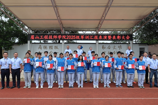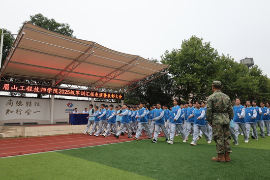 本网消息(黄子旸 报道)9月28日上午,眉山工程技师学院2025级军训汇报表演暨表彰大会在学院操场隆重举行,学院党委书记、院长代军及军训团长任杰出席大会。 大会在庄严的国歌声中拉开序幕,全体师生肃立,注视着五星红旗冉冉升起。随后,各班级方阵依次进行分列式表演,新生们步伐整齐、口号响亮,展现军训期间锤炼出的坚毅品格和团队精神。军体拳与擒拿拳方阵在教官的指挥下以刚劲有力的动作、虎虎生威的气势,赢得全场师生的阵阵掌声。此次汇报表演,不仅展现新生本次军训的学习成果,更彰显出新时代眉工院学子的蓬勃朝气与昂扬斗志。 会上,学院领导宣读了本次军训中的优秀班级、优秀教官及优秀学员表彰决定,并为获奖代表颁发荣誉证书。 学院相关部门负责人、各新生班主任、全体教官与参训学生参加本次大会。 | |